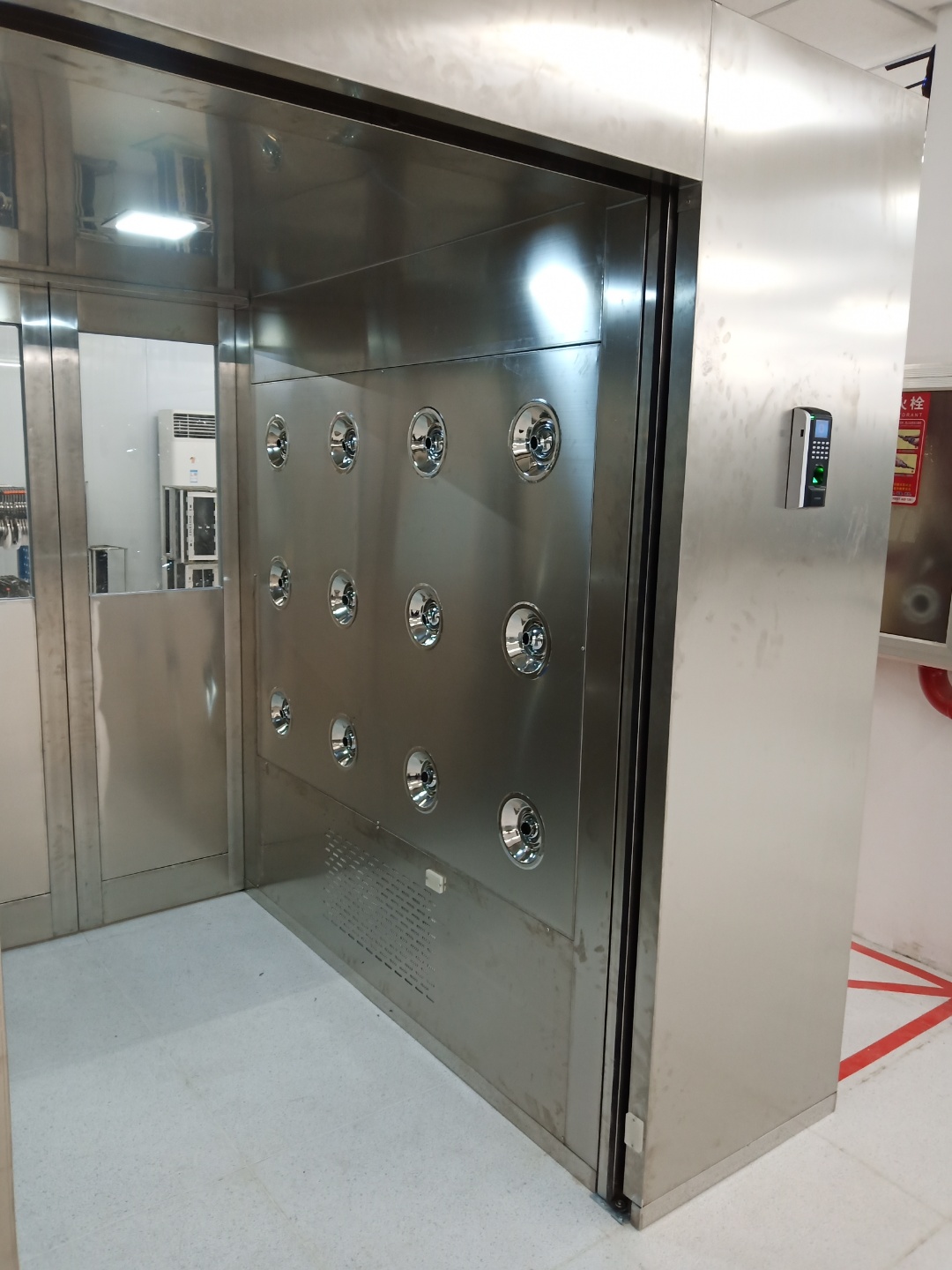 3.5按語音提示經過風淋室紅外感應區。此時風淋室雙門自動上鎖,同時風淋室風機啟動開始吹淋。