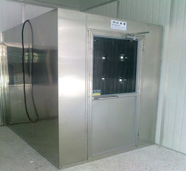 防爆風淋室是人/貨進入潔凈室所必需的通道,為了減少由于人/貨進出帶來的大量塵埃粒子,在潔凈室的入口處安裝功能齊全的“氣閘室”可以減少空氣污染微粒的數量。風淋室內的空氣由風機的送風經初效過濾器進入靜壓箱,經高效空氣過濾器過濾后,潔凈空氣以22~25m/s的超強風速從風淋室的噴嘴高速噴出,噴嘴角度可調節,可有效地吹除人身或攜帶物品表面附著的塵埃,塵埃再回收進入初效空氣過濾器,如此循環可以達到風淋除塵的目的。